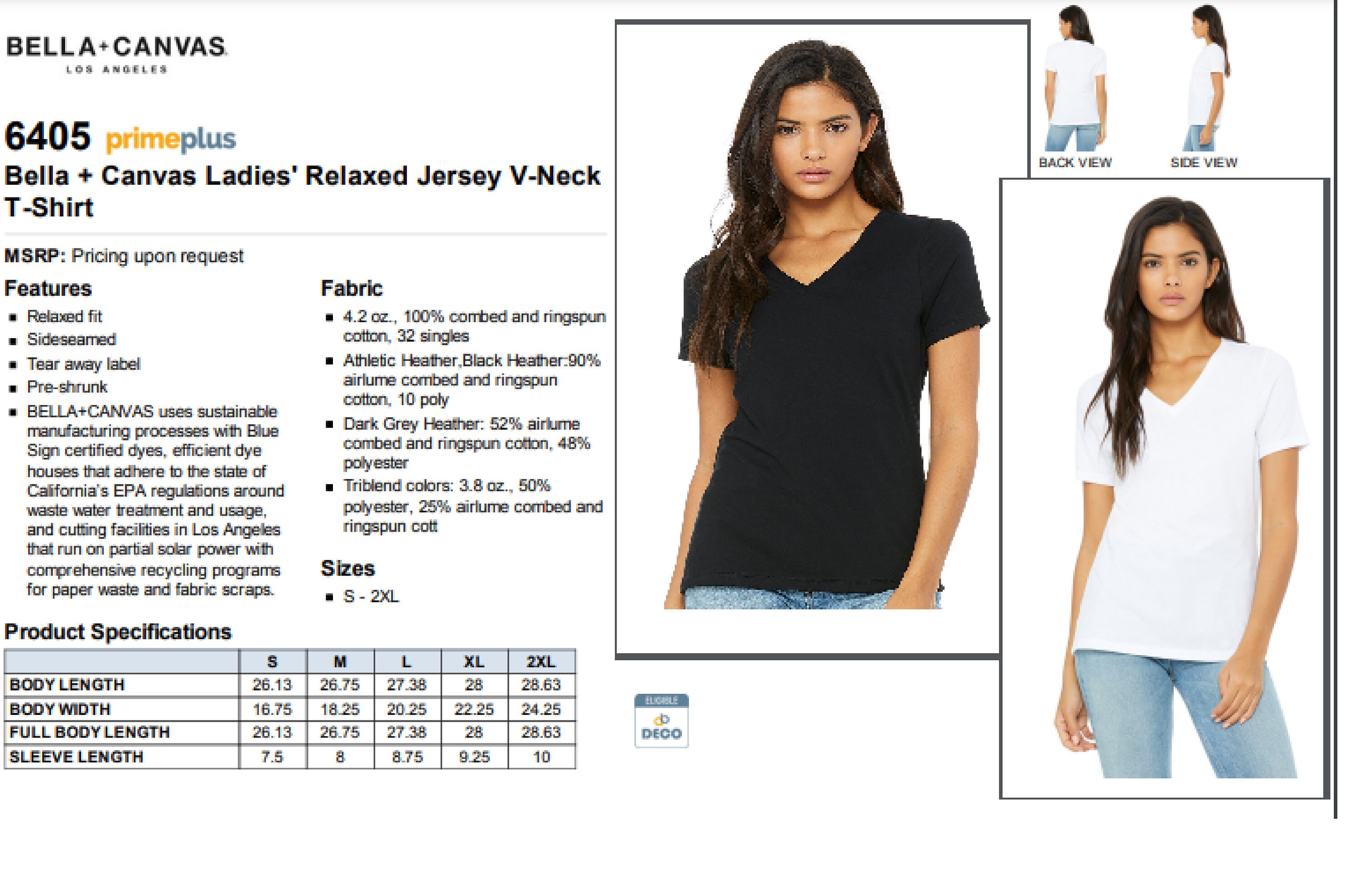 👚The SSVNeck and SS Crew Neck are light weight loose fit cotton/poly women cut T's