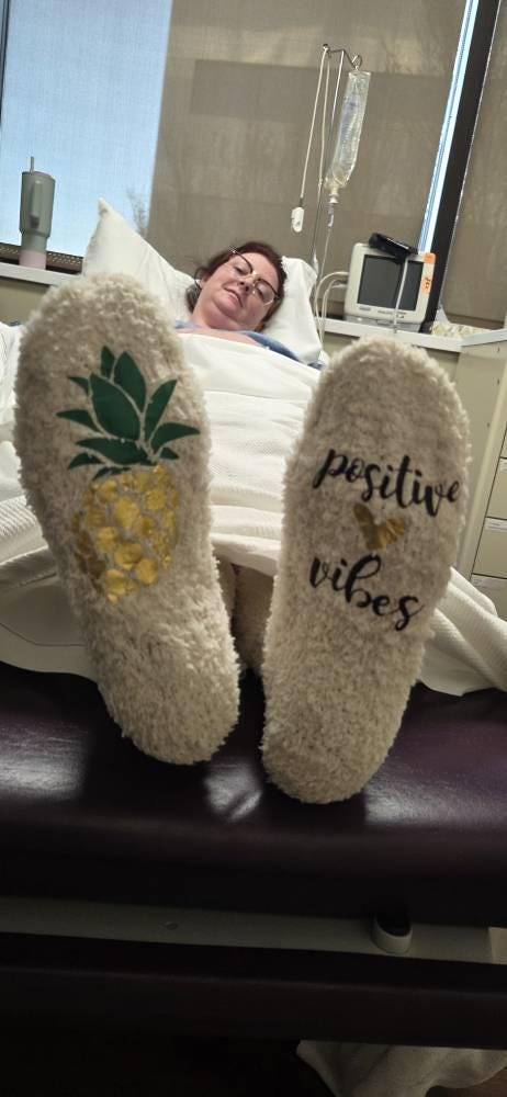 These Custom Positive Vibes Fuzzy Socks with Pineapple are a cozy way to bring encouragement to your IVF journey. They're Personalized Egg Retrieval Day Socks and a thoughtful Customized IVF Gift Idea for transfer day comfort and support.