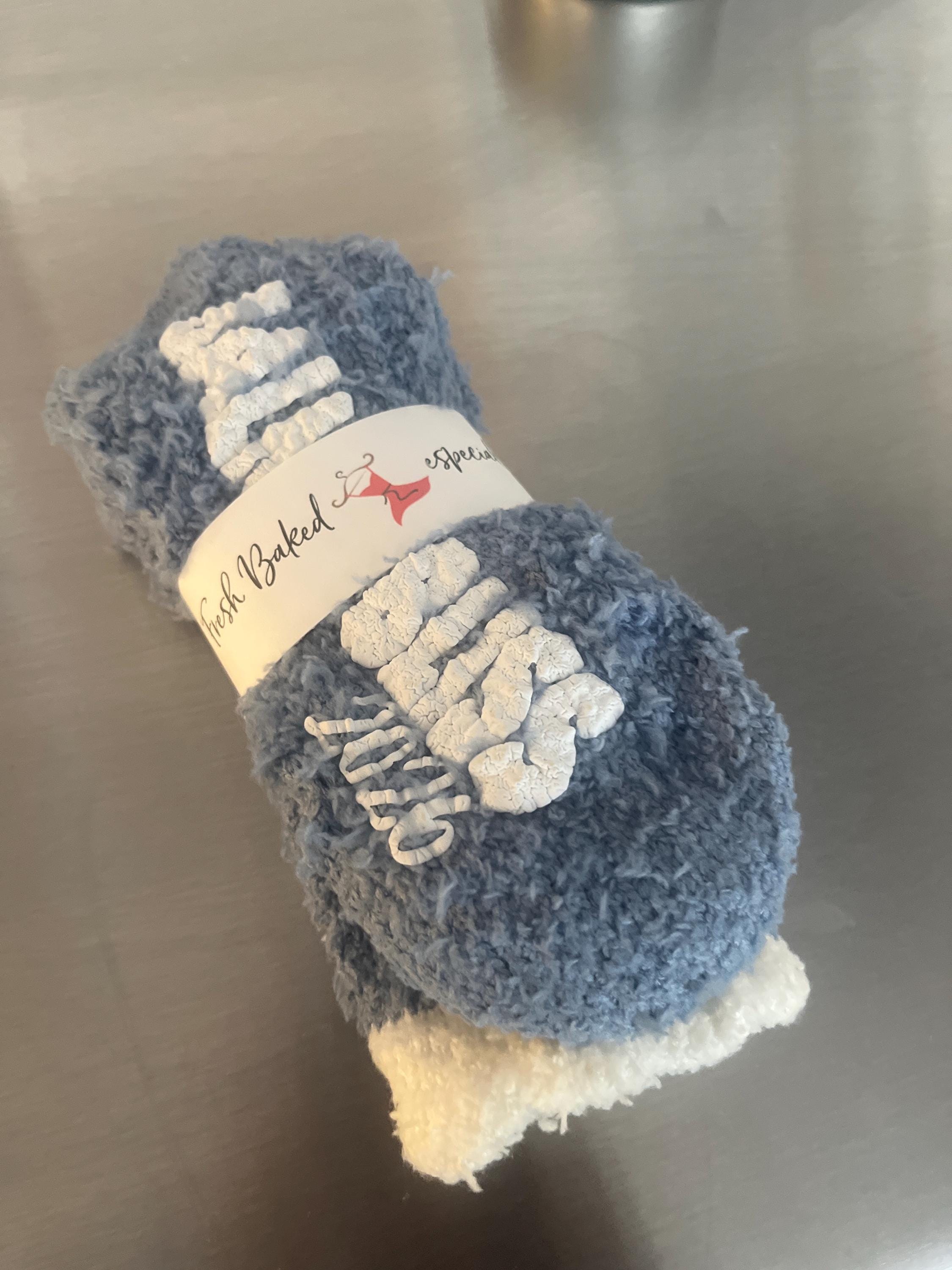 Socks exactly as described. Very soft and fuzzy. Website Photo color very true to life. This will be a gift and I feel very excited to give it Sherri was fantastic to work with. She did a mock up for approval. She even caught a typo of mine. She was very communicative and easy to work with. Highly recommend working with her. Would do it again with confidence.